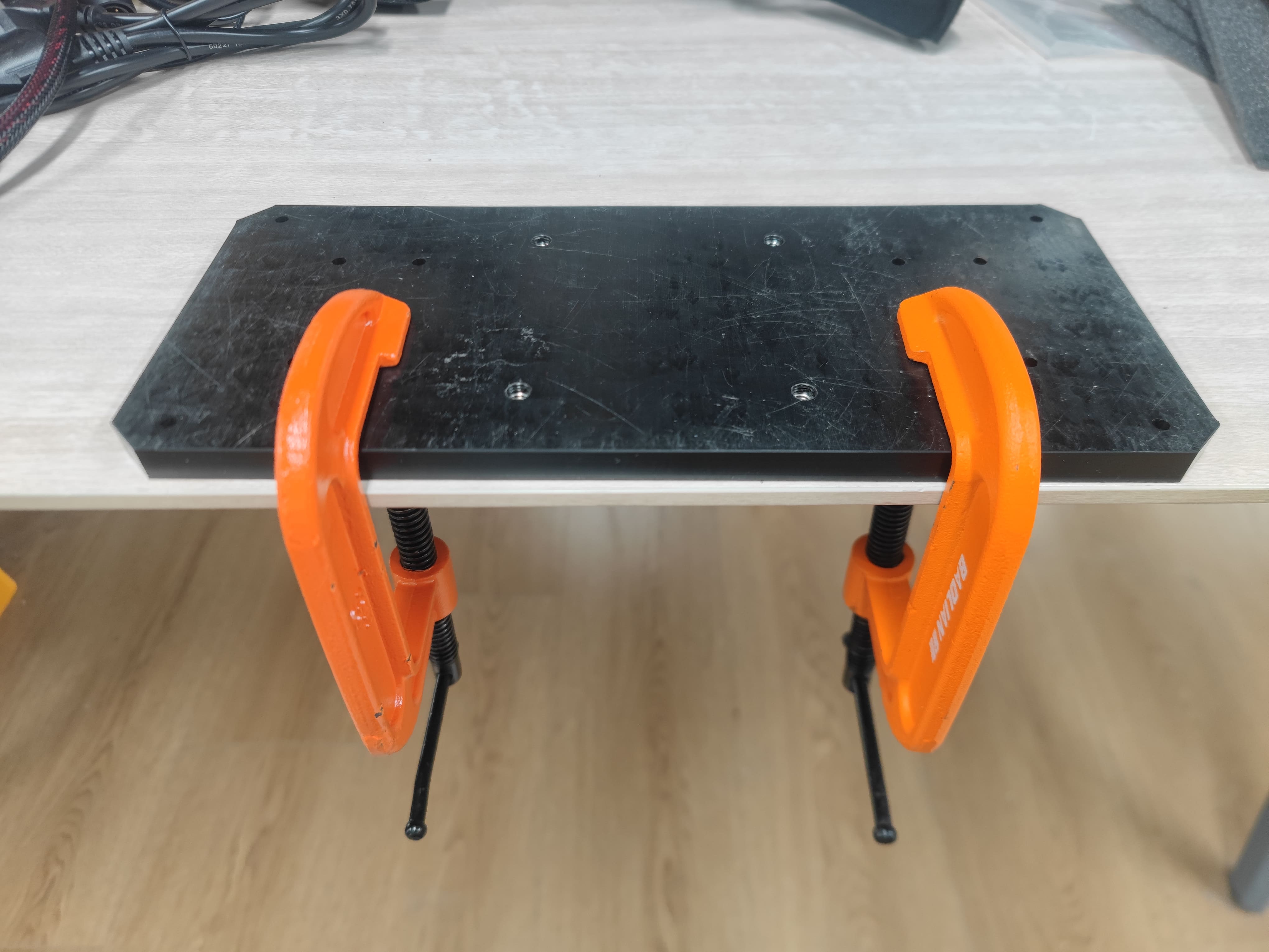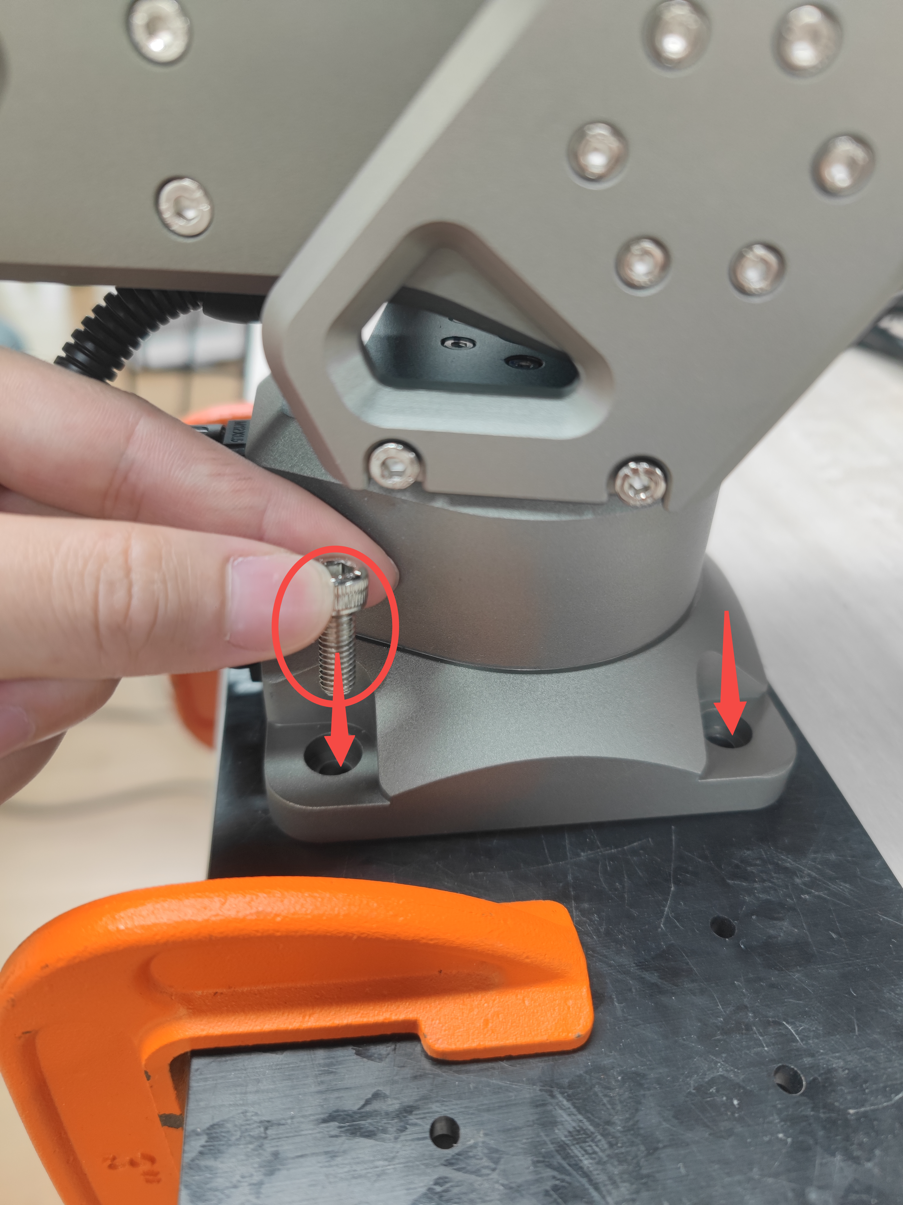 2. 在机械臂底座四角拧入螺丝,使其固定到安装板上