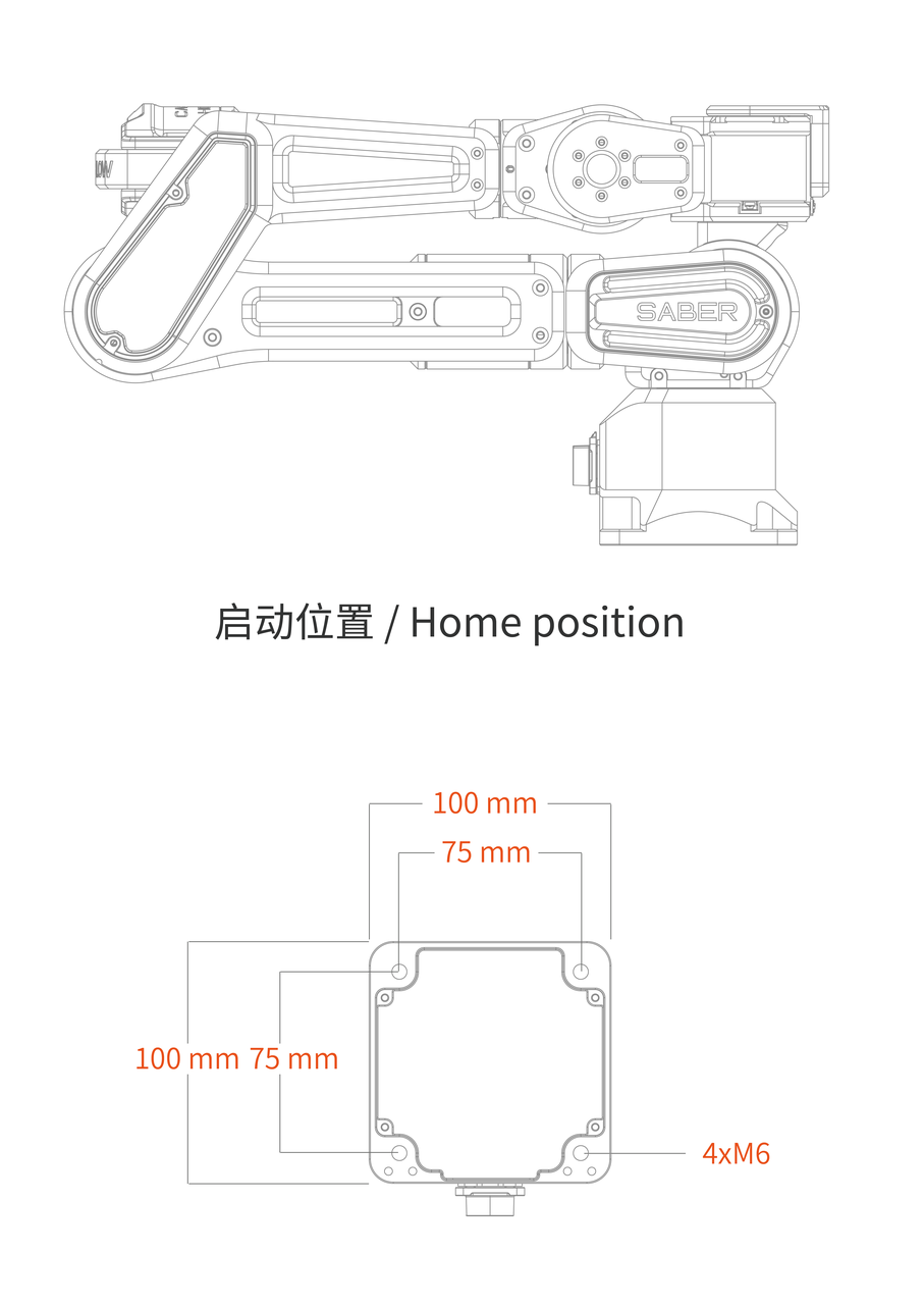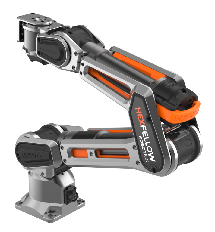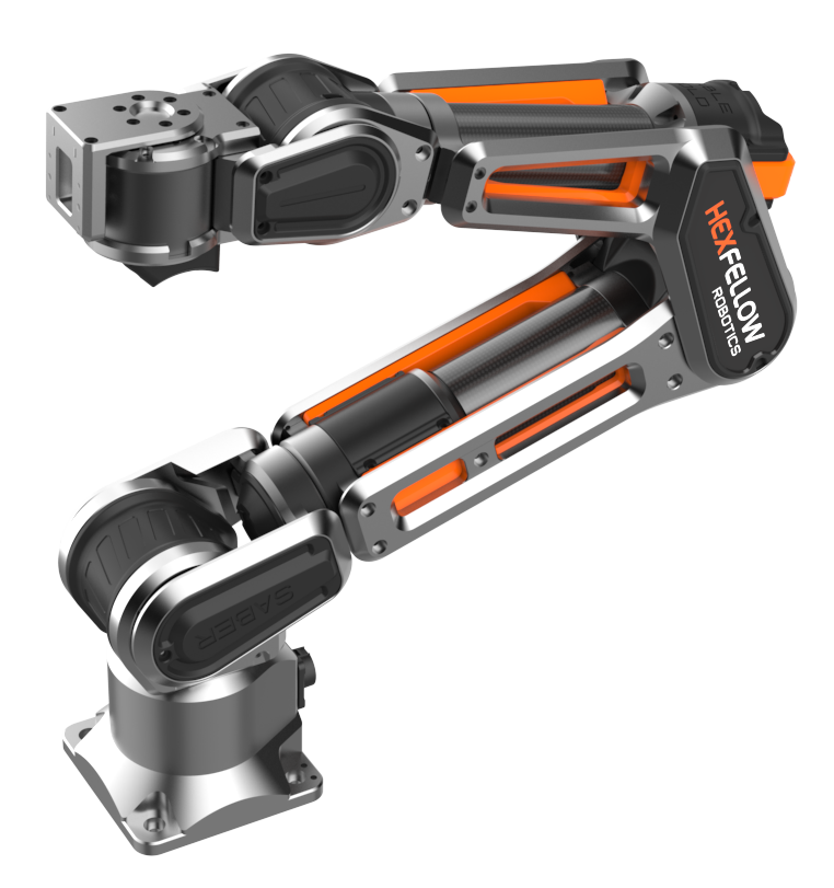 SABER is a quasi-industrial robotic arm designed for embodied intelligence and lightweight scenarios. The arm uses harmonic and planetary gearboxes with integrated motors and supports power-off self-locking for safety. The series includes two types: D6X, a 6-axis version suitable for desktop or platform use, and H7X, a 7-axis version suitable for humanoid robots.