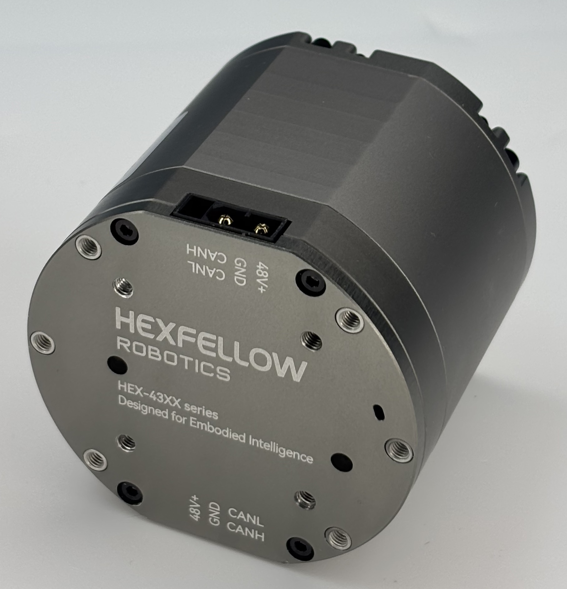 The HEX43xx series motors are integrated joint motors designed by HexFellow specifically for the embodied robotics industry. The series uses a planetary reduction system and offers advantages such as impact resistance, high torque transparency, low friction, and high cost-effectiveness. The motors feature integrated drive and control with CAN-FD communication, and support hardware timestamping, synchronization, MIT control, one-to-many control, and other functions.