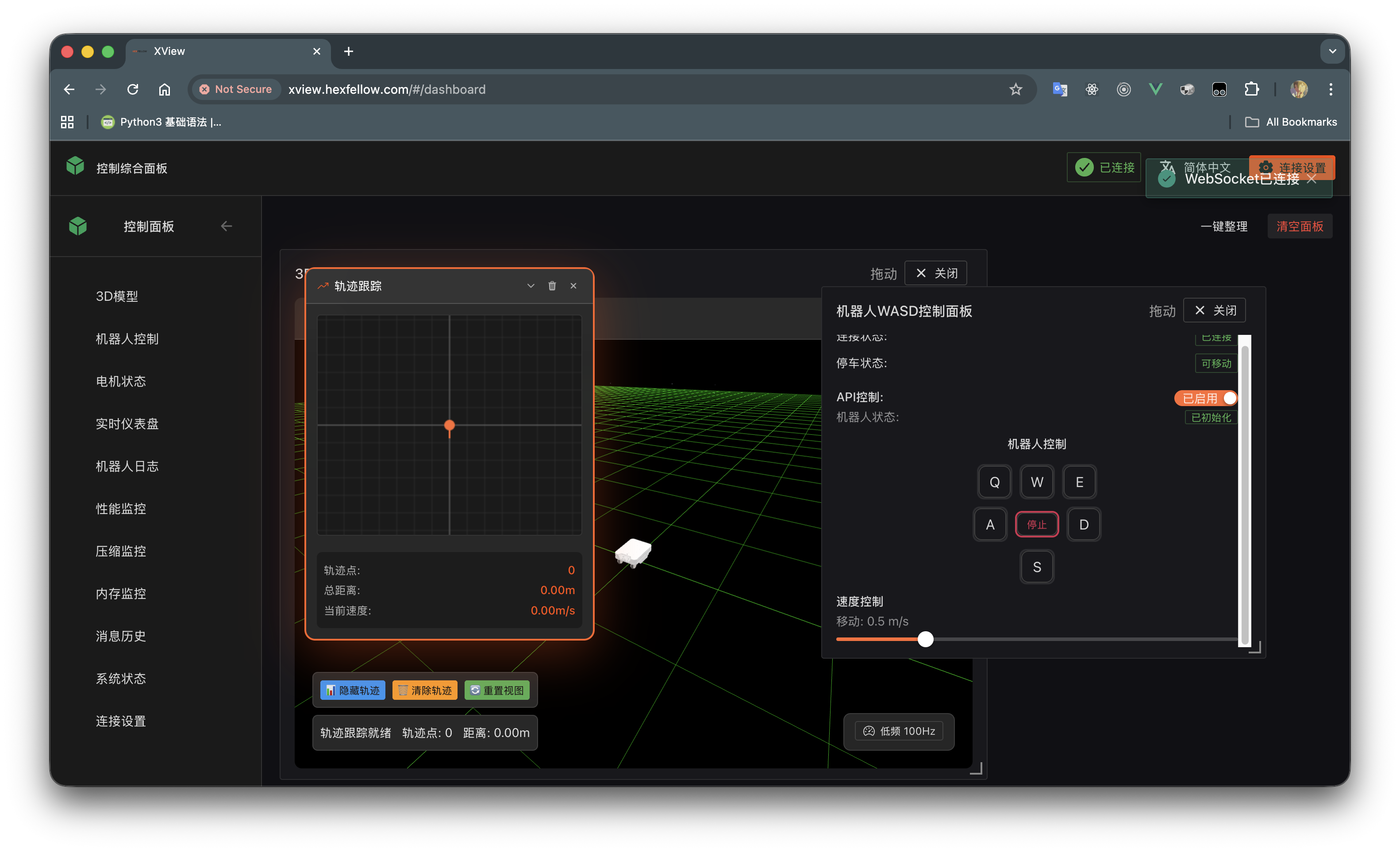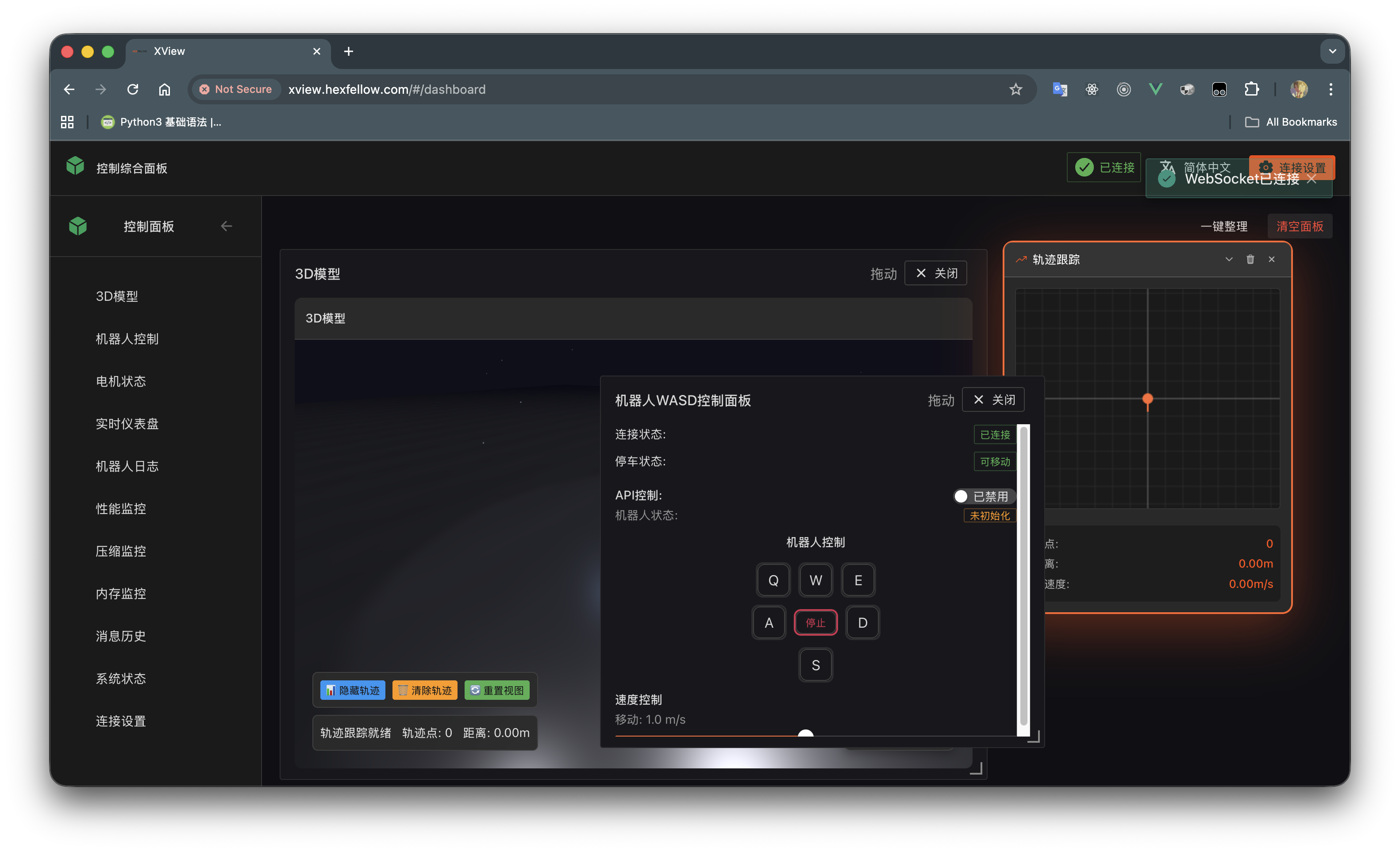 API Controlswitch, and you can now press WSADQE to move the chassis. Again, XView is only for testing purposes. Due to JavaScript performance limitations and other reasons, even if the selected chassis supports multi-directional movement, XView does not support sending such instructions. If you need multi-directional movement, please use API control.