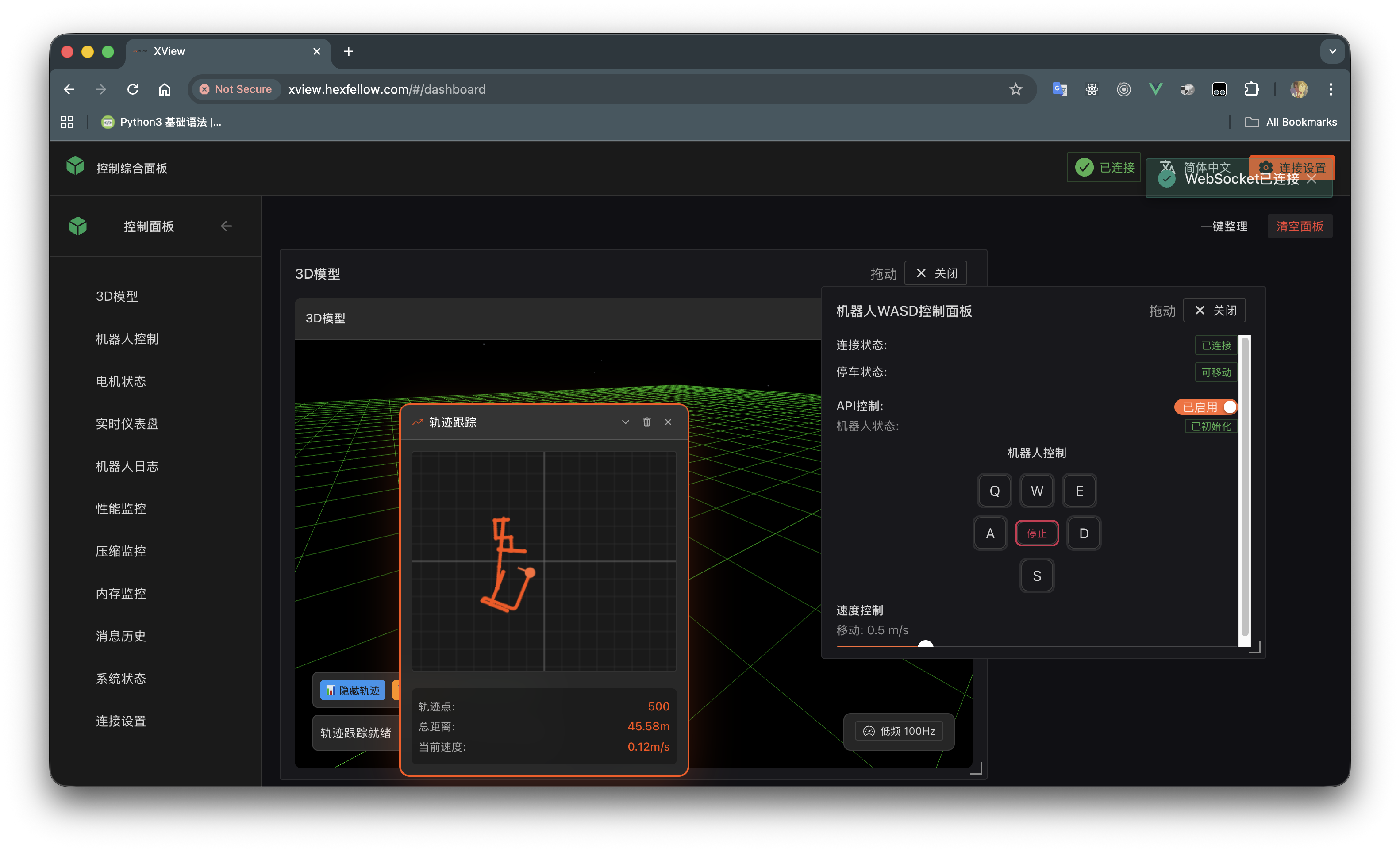 Due to browser performance limitations, XView may experience stuttering on some machines and may not achieve the highest control frequency. This is normal, and performance requirements will be significantly reduced when using API control.